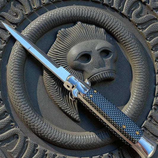 SCHLASS - Couteau de poche automatique cran d'arrêt style Carbone
